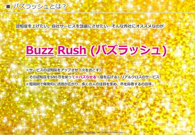 バズラッシュはBuzz1~Buzz4までのステップを通し、徐々に認知度を上げながら話題を広げていくリアルクロスのパッケージ型ソリューションです。