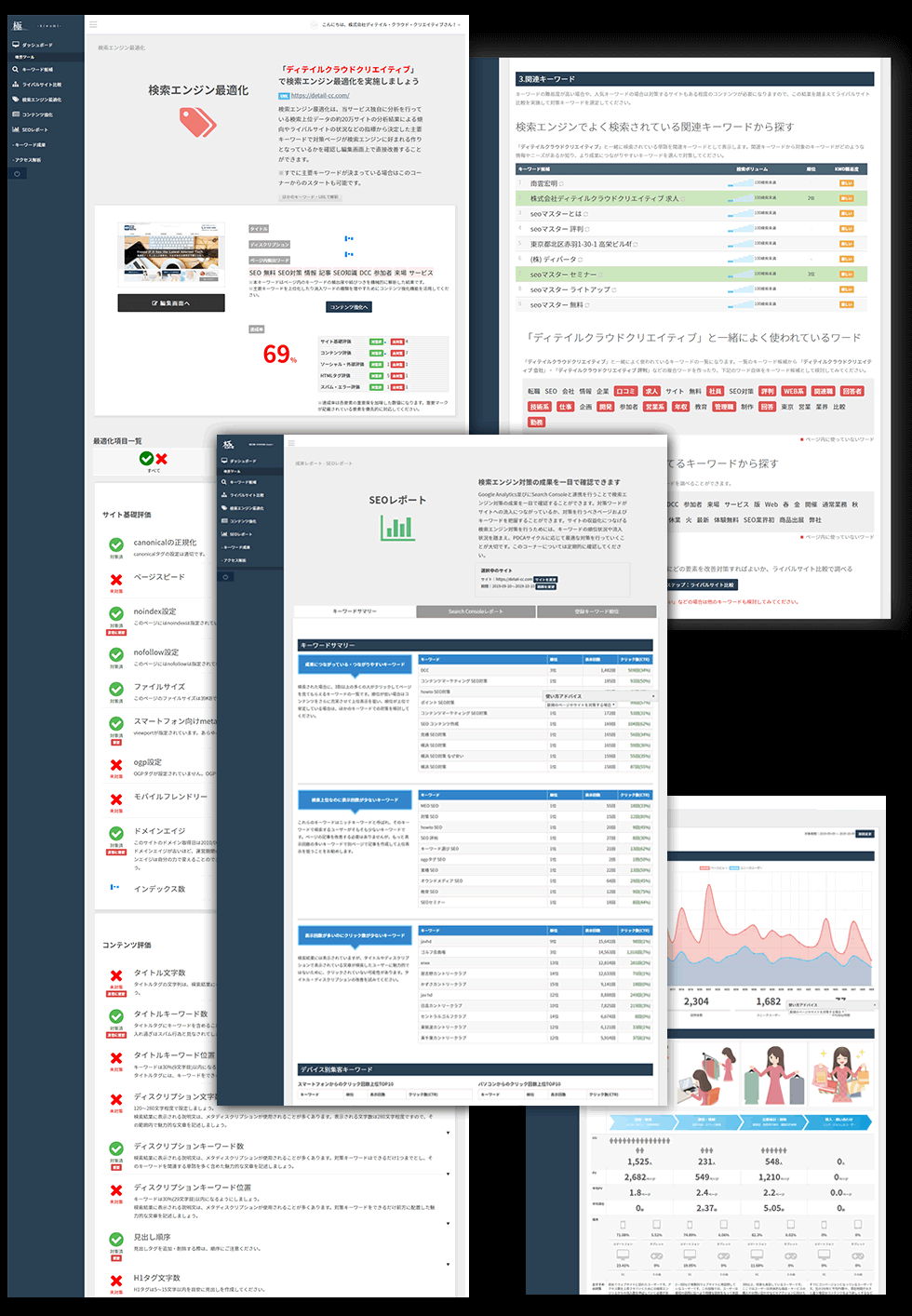 - 具体的にどの部分を修正していけば順位を上げることができるかという方法もわかりやすく示唆可能